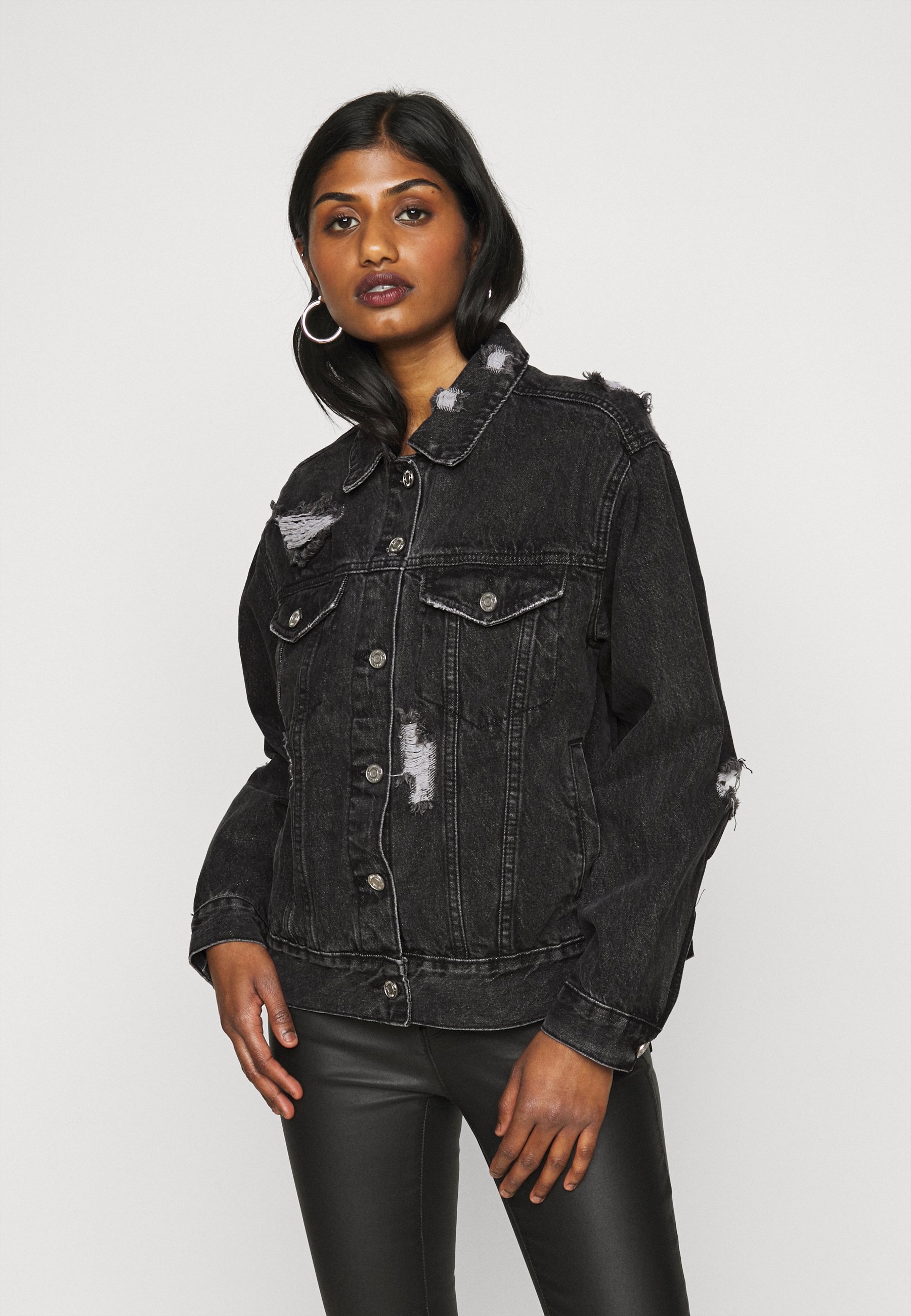 Missguided Petite Distressed Oversized Boyfriend Jacket Denim Jacket Washed Black Black Denim Zalando De