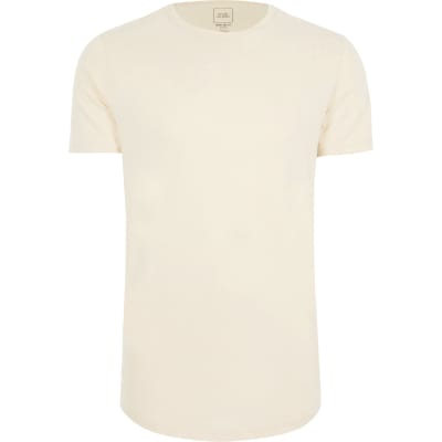 Big Tall Ecru Longline Slim Fit T Shirt River Island