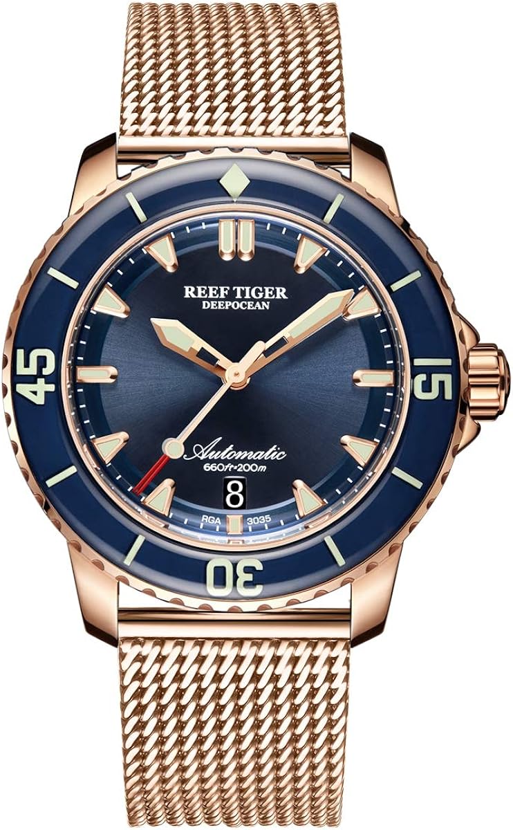 Amazon Com Reef Tiger Men Designer Diver Watch Luxury Rose Gold Automatic Watch Sapphire Crystal Rga3035 Watches