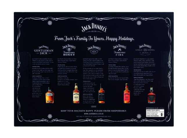 Products that are included in the various windows include four 50ml bottles each of Jack Daniels Tennessee Whiskey and Jack Daniels Tennessee Honey three bottles each of Jack Daniels Tennessee Fire and Jack Daniels. 4109 Jack Daniels Tennessee Whiskey 07L Pack Petaca. Jack Daniels holiday calendar is back with 24 windows full of Jack Daniels surprises.