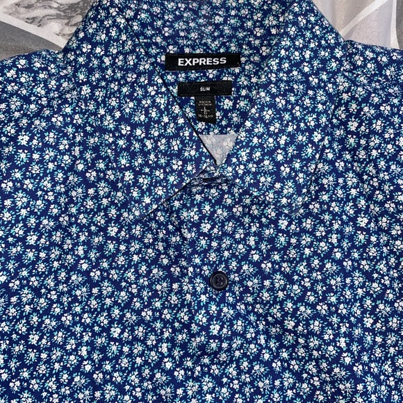 Express Men Slim Floral Stretch Cotton 1mx Dress Shirt In Navy Express Style Trial