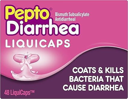 Amazon Com Pepto Diarrhea Liquicaps Bismuth Subsalicylate Anti Diarrhea Kills Bacteria To Relieve Diarrhea 48 Liquicaps Health Personal Care