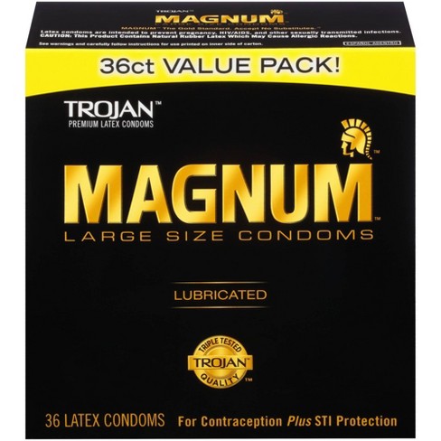MAGNUM Lubricated Condoms The Gold Standard in comfort and protection. Latex condom 15 percent longer and wider than a traditional condom that tapers at the base for a secure fit. Magnum Large Size Condoms reduce the risk of unintended pregnancy and sexually transmitted infections STIs during sex.