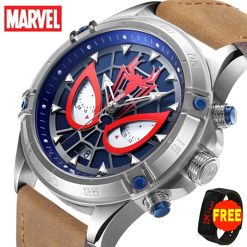 Disney Original Marvel Spider Male Trendy Watches Mens Cool Luxury 5bar Waterproofleather Wristwatch Fashion Casual Sport Clock Quartz Watches Aliexpress