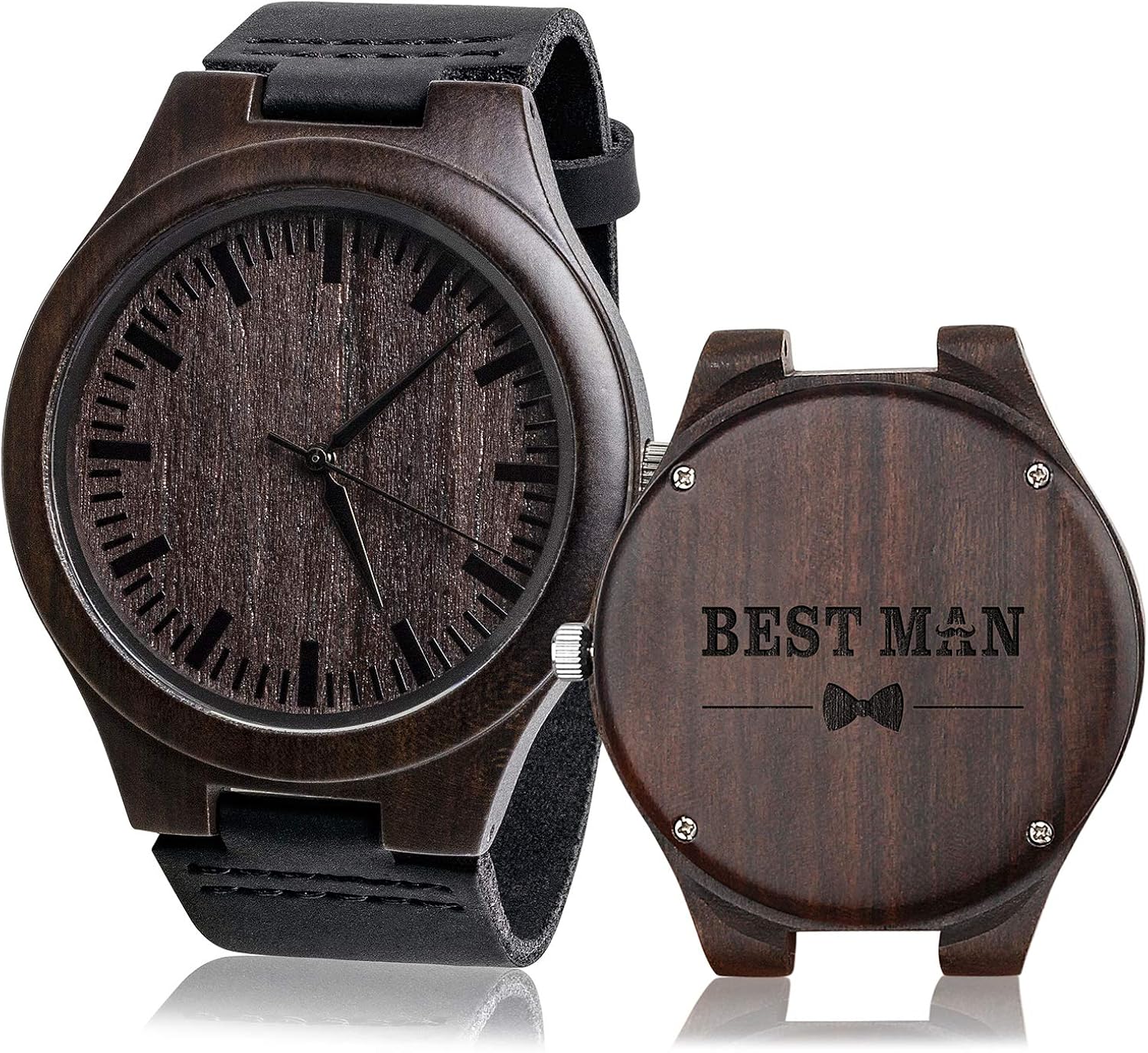 Amazon Com Engraved Best Man Wooden Watches Black Leather Strap Casual Watch Will You Be My Best Man Groomsmen Gifts For Wedding Watches